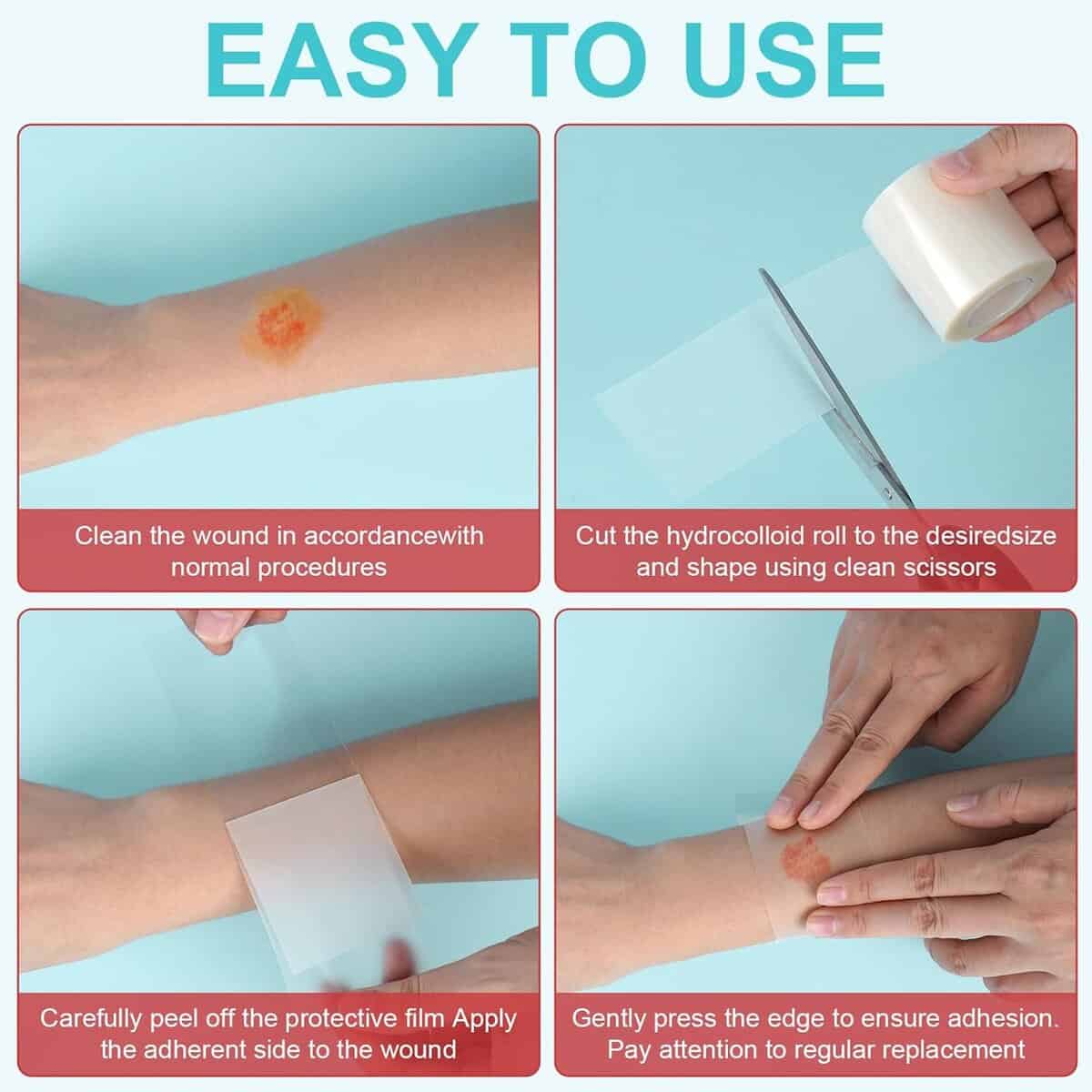 Respetuoso con la Piel, Suave y Transpirable: Rollos de hidrocoloide con composición hipoalergénica, sin látex ni irritantes agresivos. Suaves y transpirables, lo que facilita su adhesión a partes del cuerpo complejas como codos, rodillas y tobillos, evitando que se desprendan durante el movimiento. Un apósito versátil imprescindible en todos los hogares.
